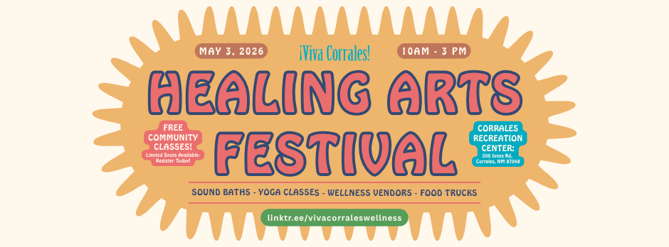 Join us for the 3rd Annual ¡Viva Corrales! Healing Arts Festival on Sunday, May 3 from 10 AM to 3 PM at the Corrales Recreation Center. This free, all-ages event features 35+ local wellness vendors offering mini-services, consultations, demonstrations, and samples, along with food trucks and a full day of connection and community.